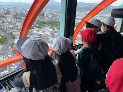 次に、京都駅へ向かい、京都タワーを上りました。365度見渡せる京都タワーからの景色に大興奮していました。「大文字山が見えるよ!」「あのお寺は西本願寺かな?」「上賀茂はあの辺かな?」と望遠鏡をのぞきながら、地図と見比べ、いろいろな発見をしている様子でした。