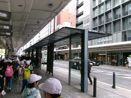まずは、四条駅へ向かい、四条通りを散策しました。おしゃれなお店やビルがたくさんあり、目をきょろきょろさせながら歩く子どもたちでした。