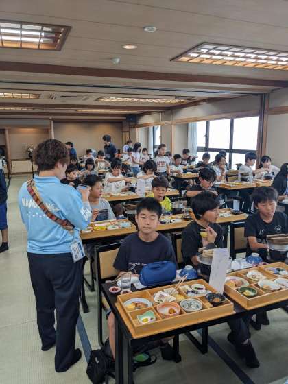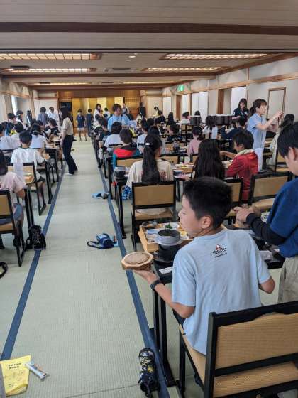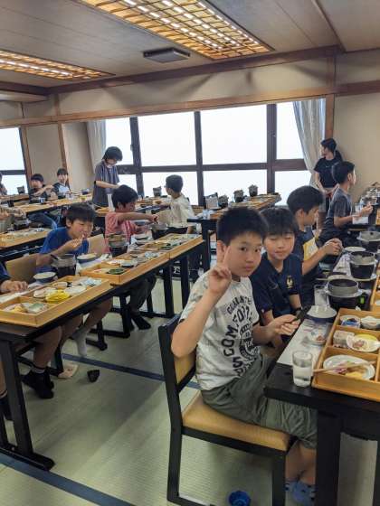 2日目の朝食です。今日の活動のため、元気にたべてます。