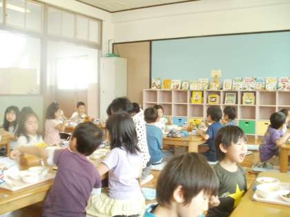今日はランチルームでの給食の様子です。
