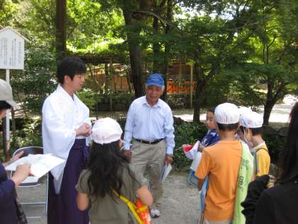 このポイントでは、上賀茂神社の高井様と自治連会長の中本さまから説明を受けました。