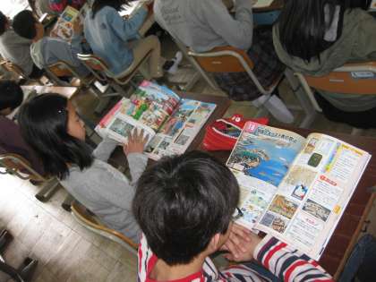 3組は、社会の資料集をじっくりと見ていました。これから習う社会の歴史単元に興味や関心をもっているようです。