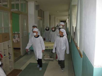 6年生が、給食室まで給食をとりに行ってくれました。頼りになる6年生です。