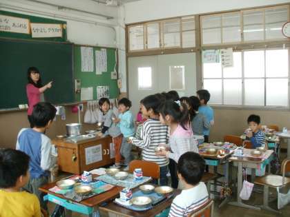5月の給食目標は「みんなでなかよく楽しく食べよう」です。