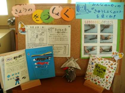 かざりつけをしたり,関連した本を展示したり,子どもたちも毎日楽しみにしています。