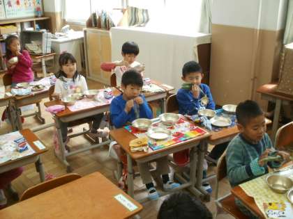 1年生も上手にひもをほどいて,葉っぱをとって食べていました。