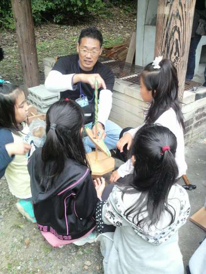 必死に火おこしをしました。この火を種火にしてかまどに火をつける予定なんですが・・・・