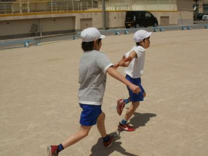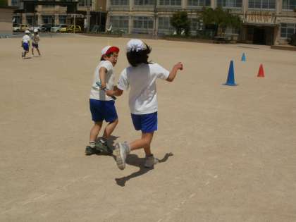 バトンの渡し方・もらい方,走り出すタイミングなど,学習したことを確認しながら活動していました。