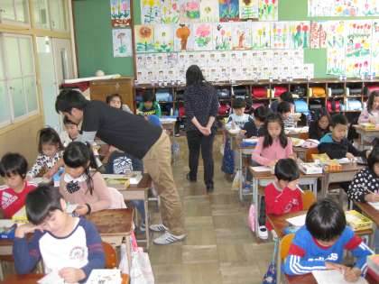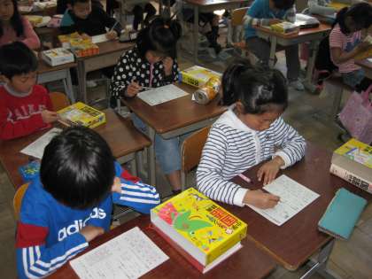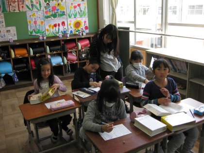 3年生では、国語辞典を使って意味のわかりにくい言葉を調べるときに、どんな方法で調べればいいか学習していました。今日は、担任の先生と司書教諭の藤城先生と一緒に学習しました。