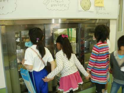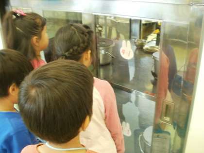 調理員さんが使う大きなしゃもじや釜にびっくり!!