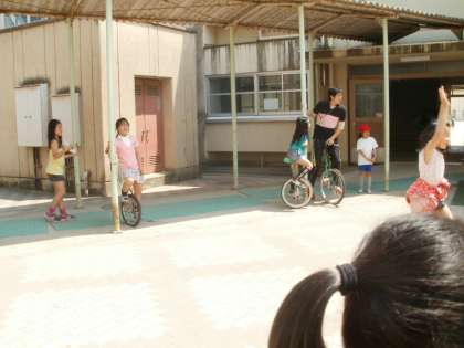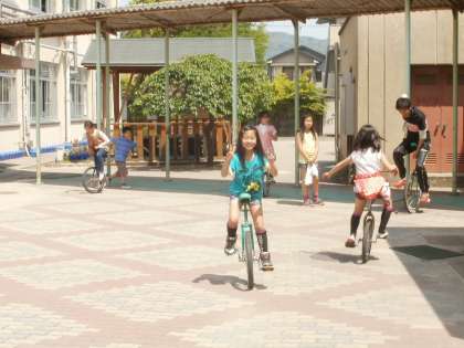 昼休みには,中庭で一輪車を練習する子がたくさんいました。