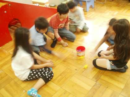 今日は昼は少し雨降りで,室内で遊んでいました。