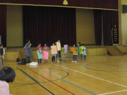 今日は、柊野小学校で北上支部「みんなよろしくの会」がありました。上賀茂小学校のお友だちは、デジカメやパソコンを使って作成した、自己紹介カードをみんなにみせて、しっかりと発表できました。