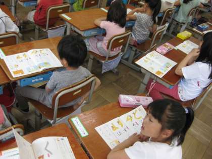 5月の中旬になりました。1年生の勉強もちょっとずつ難しくなってきました。今日は、少し難しいひらがなに挑戦です。