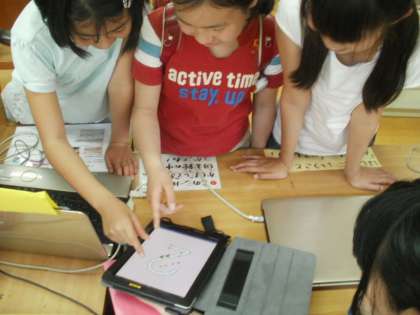 放課後,図書室で残っていた子どもたちがタブレットを触っていました。今年はいろいろな学年・授業で活用できたらいいなと思います。