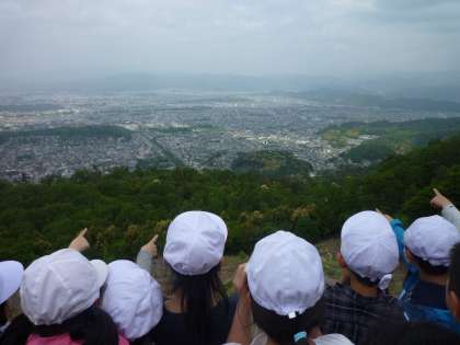登ったあとは,社会科で学習した京都市の地形について実際に見ながらたしかめました。