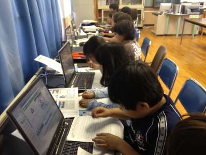 資源ごみの行方について調べた後,リサイクルできるものについているマークを学習しました。今回はパソコンを使って調べました。