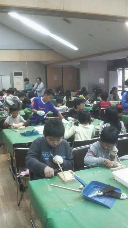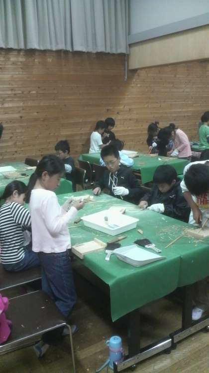 花背山の家で生活する間 各自 食事で使う「おはし」を竹の棒を小刀で削って作ります。