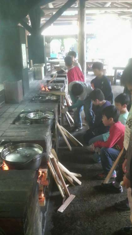 二日目の昼食は,学校で練習した飯盒でのご飯とカレー作りです。