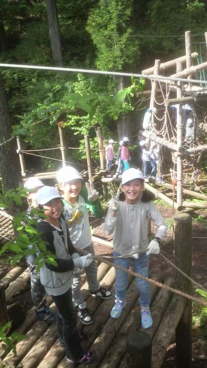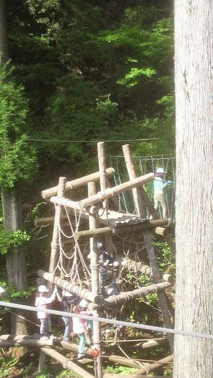 花背山の家 冒険の森にあるアスレチックをしました。