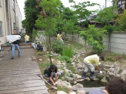 また、北校舎の北側にあるビオトープが荒れ放題でしたが、今年度になってからおやじ会の方々が何回かにわたって整備をしていただきました。
