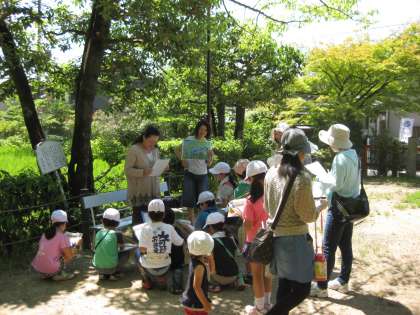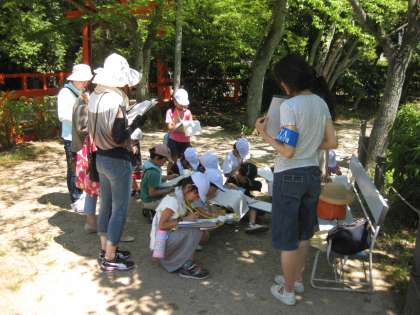 大田神社周辺のポイントでは、地域の方々とPTAの方々が協力して説明をしていただきました。