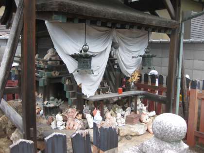 今日は、特別に門を開けていただきました。いっぱいお人形がおいてあります。なぜ、夜泣きの神様というのだろう???