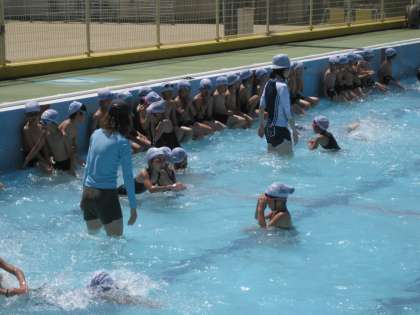 今日は、1・2時間目に2年生がプールで学習をしていました。さすがに2年生です。全員が、顔をつけることができます。