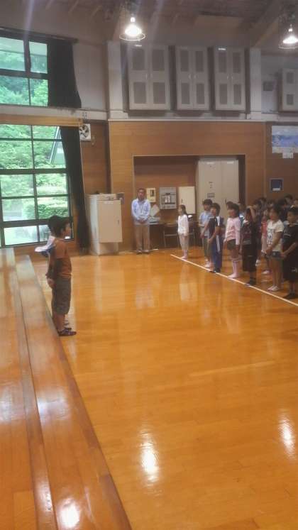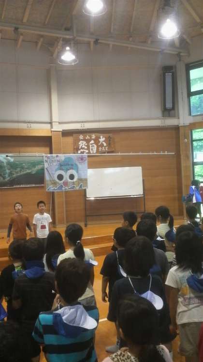 元気に校歌を歌いました。児童代表からの言葉もありました。「3日間 みさきの家にお世話になります。よろしくお願いします。」