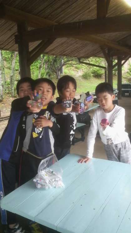 言葉を書いたり 何かに見立ててペイントしたりして 記念になるものを作ります。