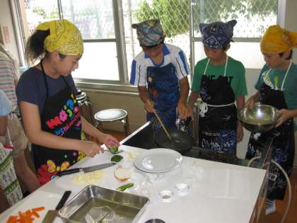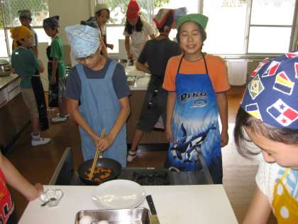 家庭科室で6年生が調理実習を始めました。何ができるのでしょうか?