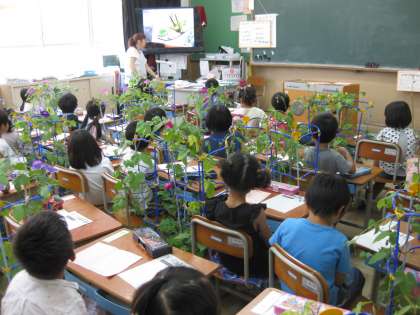 どの子のアサガオもしっかりと育っています。きっと毎日一生懸命に水やりをしたからでしょう。子の育ちぐあいをみると、夏休み中に、朝顔の種とりができそうです。