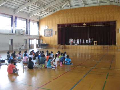 今日も、暑い体育館で5年生が学習発表会の練習をしていました。ほぼ仕上がって来たようです。