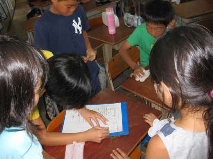 代表委員会で工夫をこらした校内のポイントを話し合い、本日の3校時に実施されました。縦割りグループで実施するので、まず、高学年が教室にむかえに行ったり、出席をとったりしました。その後、各ポイントをまわるときにも6年生は、低学年の子どもたちの手をつないだり、声をかけたりしながら優しく接していました。