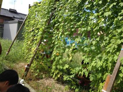 夏休みの間に,ぐんぐん大きくなったツルレイシです。