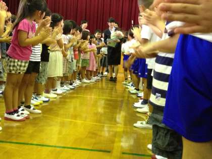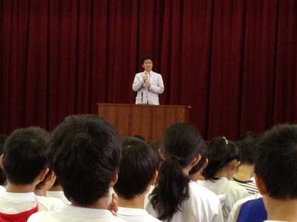 今日から9月です。朝,全校朝会を行いました。離任される栄養教諭の先生とのお別れの式を行いました。また,教育実習に来られた先生の紹介もありました。新しい環境で頑張ってほしいと思います。