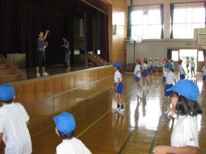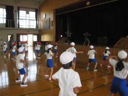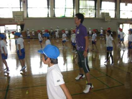 体育館では、4年生が団体演技の練習をしていました。まだ、やり始めて時間がたってないのか、まだ、動きがはっきりとわかっていない子どもたちもいました。本番までまだまだ時間があります。頑張ってください!!!