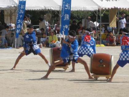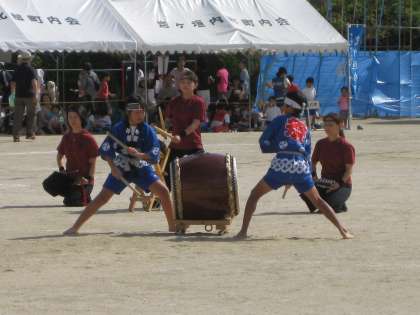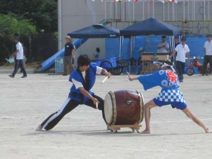 区民運動会では、和太鼓クラブの発表に場も設けていただいています。日頃の練習の成果を十分に発揮できました。