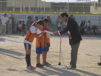 画像は、町内対抗小学校リレーの表彰の様子です。たくさんの競技に出場して疲れていることと思います。ゆっくり休んで、火曜日には元気に登校してください。