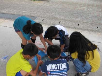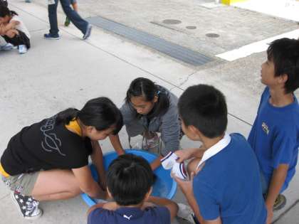 先日、教室で洗濯の仕方を学んでいた6年生ですが、今日はそのことをいかして実習です。お天気が悪いですが、まずは、洗い方や汚れの落ち方を実際にやってみて勉強します。家でもしてくださいね!!