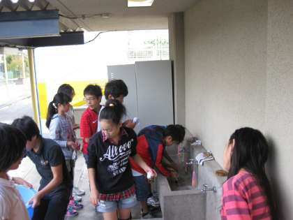 昨日とは、違うクラスが洗濯実習をしていました。今日も天気が悪いようです。帰るまでに乾くかな?