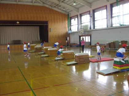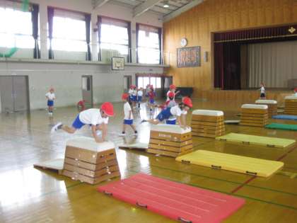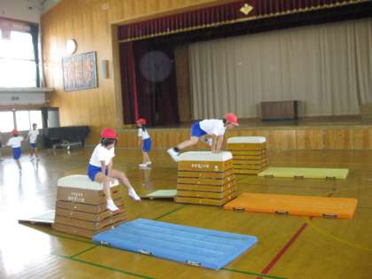 体育館で2年生が跳び箱に挑戦していました。自分のめあてにおうじた跳び箱の高さに挑戦していました。子どもたちの中には、6段を簡単に跳べる子もいます。また、低い段でも、跳び越すときのフォームに気をつけながら跳んでいる子もいました。