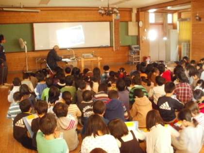今日 「深泥池を守る会」の田末さんに来ていただき,深泥池やその周辺にいる生き物についてお話を聞きました。「きのこ」「鳥」「魚」や「水草」など いろいろな生き物のお話でした。深泥池には 雨水でないと生きていけない 珍しい「水草」が生息しているそうです。天然記念物の生き物もおり,とても大切な池なんだそうです。外来の生き物もたくさん 入ってきており 環境を守り なんとか日本古来の生き物が生き続けられるようにしていきたいという思いをもっておられます。