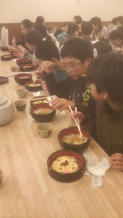 自分たちが作ったうどんです。おいしそうです。