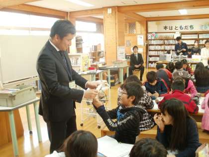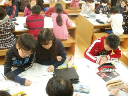 先週の水曜日に、5年生が社会科の授業を公開しました。環境に優しい車づくりについて調べました。社会科では、自分たちがたてた学習問題を自分たちの力で解決していくことが大切です。この学習問題を解決するための手段・方法に、今まででしたら『図書館の本』『パソコンルームのパソコン』そして、各自が持っている『資料集』がありました。自分の調べたい方法で調べ学習をいっせいに始めると、子どもたちがそれぞれの場所に分かれてしまうので、担任1人では大変でした。