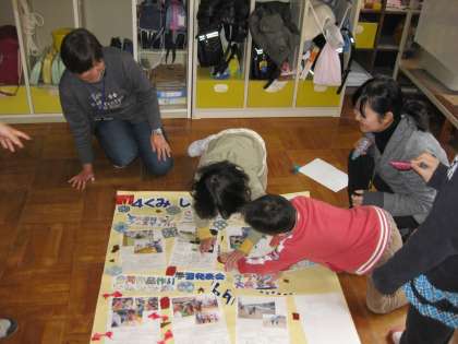 4組の教室から「もう少しでできる!」という声が聞こえてきました。教室の中に入ってみると、綺麗に飾られた新聞がもうすぐできあがります。一人一人がしっかりとした記事を書きました。
