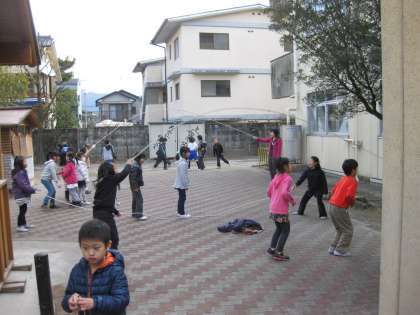 中庭で今流行っているのは縄跳びのようです。