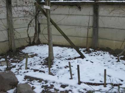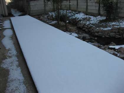 北校舎の北側のビオトープは、1日中陽があたらないので、まだ綺麗に雪が残っていました。フタバアオイを植えたところも、たくさんの雪が積もっていました。フタバアオイは大丈夫でしょうか?