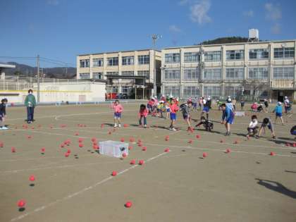 運動場から大きな声援が聞こえてきました。3年生がクラス対抗でミニ運動会?をしていました。見に行ったときは、グルグルリレーや平面玉入れの競技中でした。クラス一丸となって大応援です。勝ち負けはあったと思いますが、3年生のいい思い出にしてください。