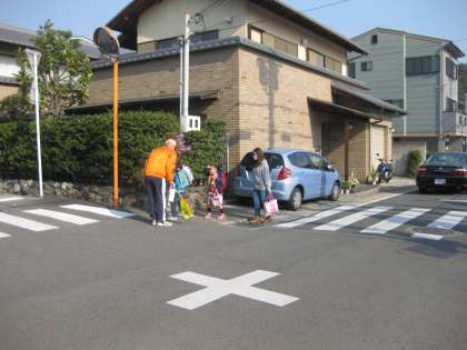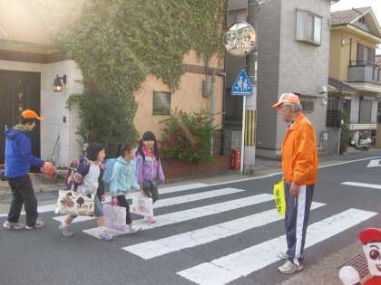 スクールガード隊の方にも大きな声で挨拶ができました。おうちの方と一緒に安全を確認しながら登校してくる1年生もいました。